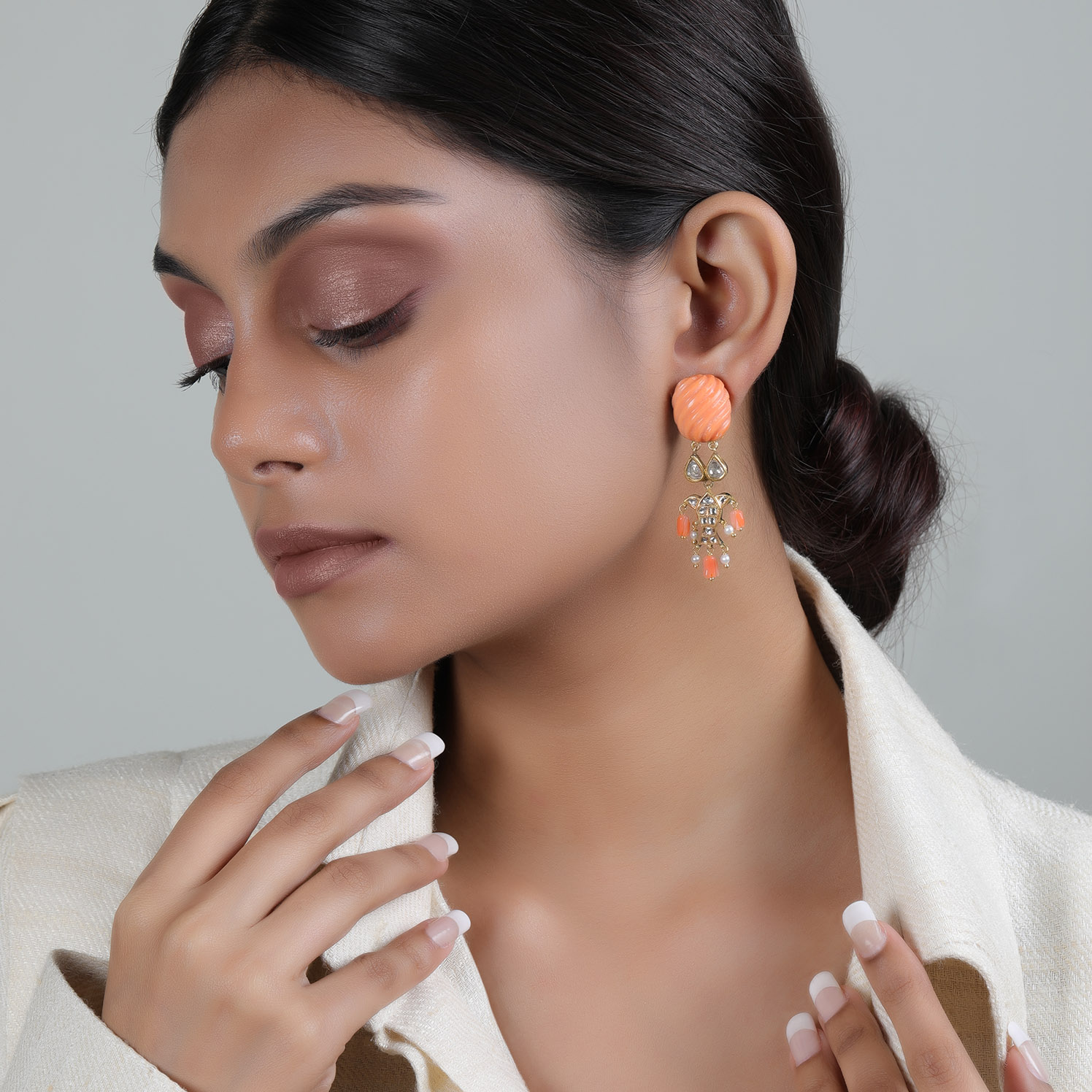 Home » Shop » Earrings » Fish Coral Jadau Polki Earrings